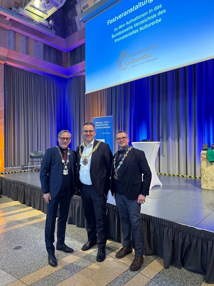 Nun ist es offiziell. Präsident Michael Seubert, Vizepräsident Michael Jahr und Präsidiumsmitglied Zeno Ablass nahmen die Urkunde für das Immaterielle Kulturerbe in Saarbrück in Empfang.
