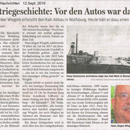 Nachfolgend ein Bericht der "Wolfsburger Nachrichten" vom 12. September 2019 mit dem Thema: "Industriegeschichte: Vor den Autos war das Salz.