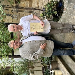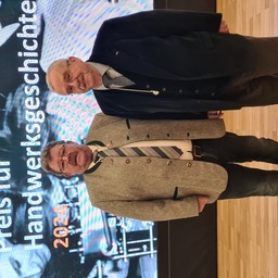 Ehrenpräsident Hans Jürgen Wiegleb (rechts) mit Geschäftsstellenleiter Horst Teuscher auf der Preisverleihung zur Dokumentation der Handwerksgeschichte am 31.01.2024