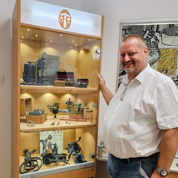 Der Geschäftsstellenleiter Horst Teuscher gratuliert dem langjährigen Obermeister der Innung Halle, Jens Fischer, zum 60. Geburtstag und zur "Silbernen Ehrennadel" des Zentralverbandes und bedankt sich im Namen des Zentralverbandes für sein persönliches Engagement für das Gold- und Silberschmiede-Handwerk.