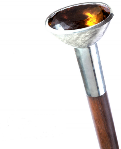 Die Jury überzeugte der Gehstock in seiner schlichten Eleganz und seiner Funktionalität. Der eingefasste Citrin schmückt nicht nur den Stock - er schmeichelt auch der Hand auf sehr angenehme Art. Angesichts des demografischen Wandels in unserer Gesellschaft, die sicherlich in Zukunft mit einem vermehrten Einsatz von Hilfsmitteln für die ältere Bevölkerung einhergeht, ist die Verwandlung dieses Gehstockes in ein funktionales Schmuckstück sehr gut gelungen. (Auszug aus dem Katalog des 16. Hessischen Gestaltungspreises 2016)