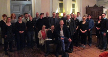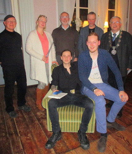 Mittelpunkt an diesem Abend war der berufliche Nachwuchs. Die Gesellen - Prüfung ist erfolgreich durchgeführt worden. Die beiden Prüflinge wurden mit dem Ringriegel zum Goldschmied geschlagen, so als Gesellen in die Gemeinschaft  der Goldschmiede aufgenommen und von ihren Verpflichtungen aus dem Lehrvertrag freigesprochen. Sie durften danach den silbernen Innungssturzbecher leeren.